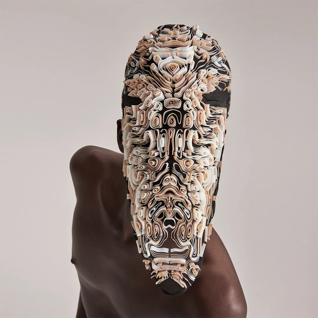The Masks were shaped through advanced AI and computational design, allowing every curve and texture to be defined with precision. From concept generation to material behaviour, data-driven algorithms were modelled into intricate patterns that balance flexibility, colour, and structure. Layer by layer, unique polymer forms were fused onto delicate chiffon, guided by adaptive algorithms that translated thermal studies into responsive forms, creating masks that are as functional as they are poetic, merging digital intelligence with organic elegance.