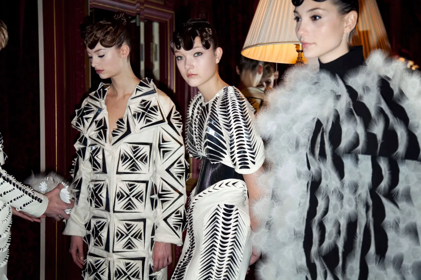 The invisible forces of energy were translated into dynamic architectural forms by AI and generative design algorithms that map the natural field lines, then 3D printed and laser cut. Using 3D modelling, laser cutting, and 3D printing software, the designer collaborated with Neri Oxman and Philip Beesley in creating fluid, sculptural pieces that captured the visual essence of energy's movement and power through wearables.