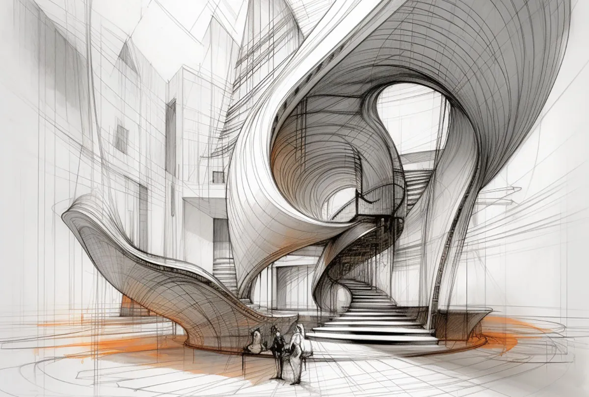 The early design sketches are either freehand or digitally crafted, not detailed accurately, but they provide the necessary information about material, spatial volume, textures, and surroundings. Conceptual sketches are the foundational drawings upon which the technical drawings, plans and elevations are built.