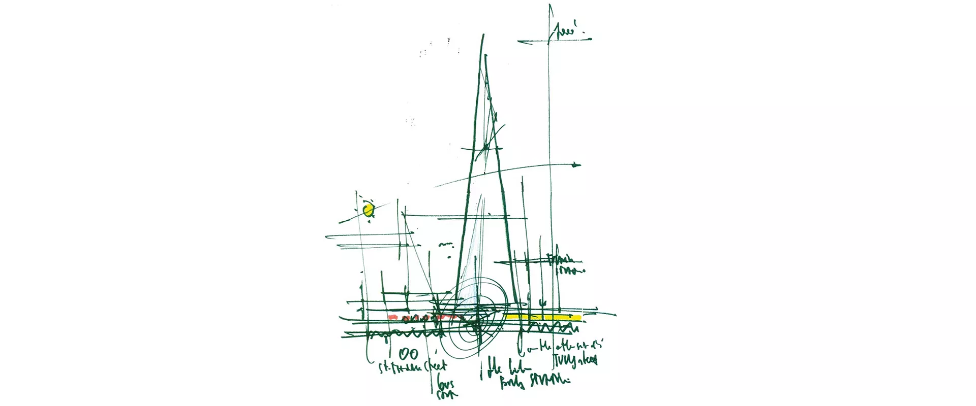 Known as the “architect for people,” Renzo Piano crafts architecture that belongs to its place, technology, and landscape. His famous napkin sketch for The Shard in London captured the essence of a dynamic site conceptualized as a giant sail or an iceberg. Piano’s mastery translated this holistic conceptual sketch into a vibrant structural facade system, executed in alignment with the visual metaphor. The use of glass reinforced the lightness and transparency found in the initial sketch, ensuring that the original spirit of the design was maintained through careful technical elaboration.