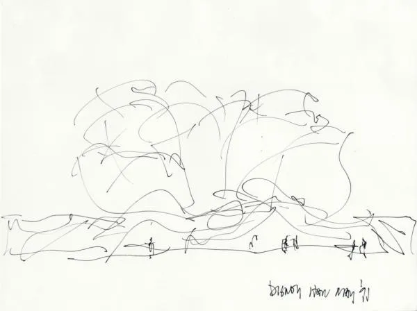 The late Frank Gehry, an icon of deconstructivism, prioritized architectural ideas through drawings, defined by spontaneous lines that conveyed a conceptual sense of emotion and aliveness. These drawings conveyed loose directions and shifting spatial relationships without explicitly describing the architectural mass. His approach introduced technical challenges during the construction and fabrication stages of curved forms, resulting in the development of entirely new manufacturing solutions, including the creation of a specialized furnace designed to produce the required curved and projected glass panels for his buildings.