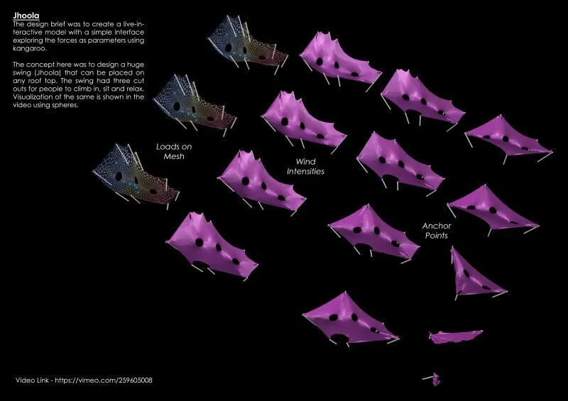 Kedar Undale’s approach to design is strongly shaped by his academic training in computational and parametric systems. He completed his master’s degree in Advanced Architecture at IAAC Barcelona, where his studies focused on computational design, digital fabrication, sensor-based systems, and immersive technologies like virtual and augmented reality. One of his academic projects, Jhoola, explored force-driven design using Kangaroo, resulting in a large interactive rooftop swing that responds to structural forces through a simple interface and installs across different rooftops.