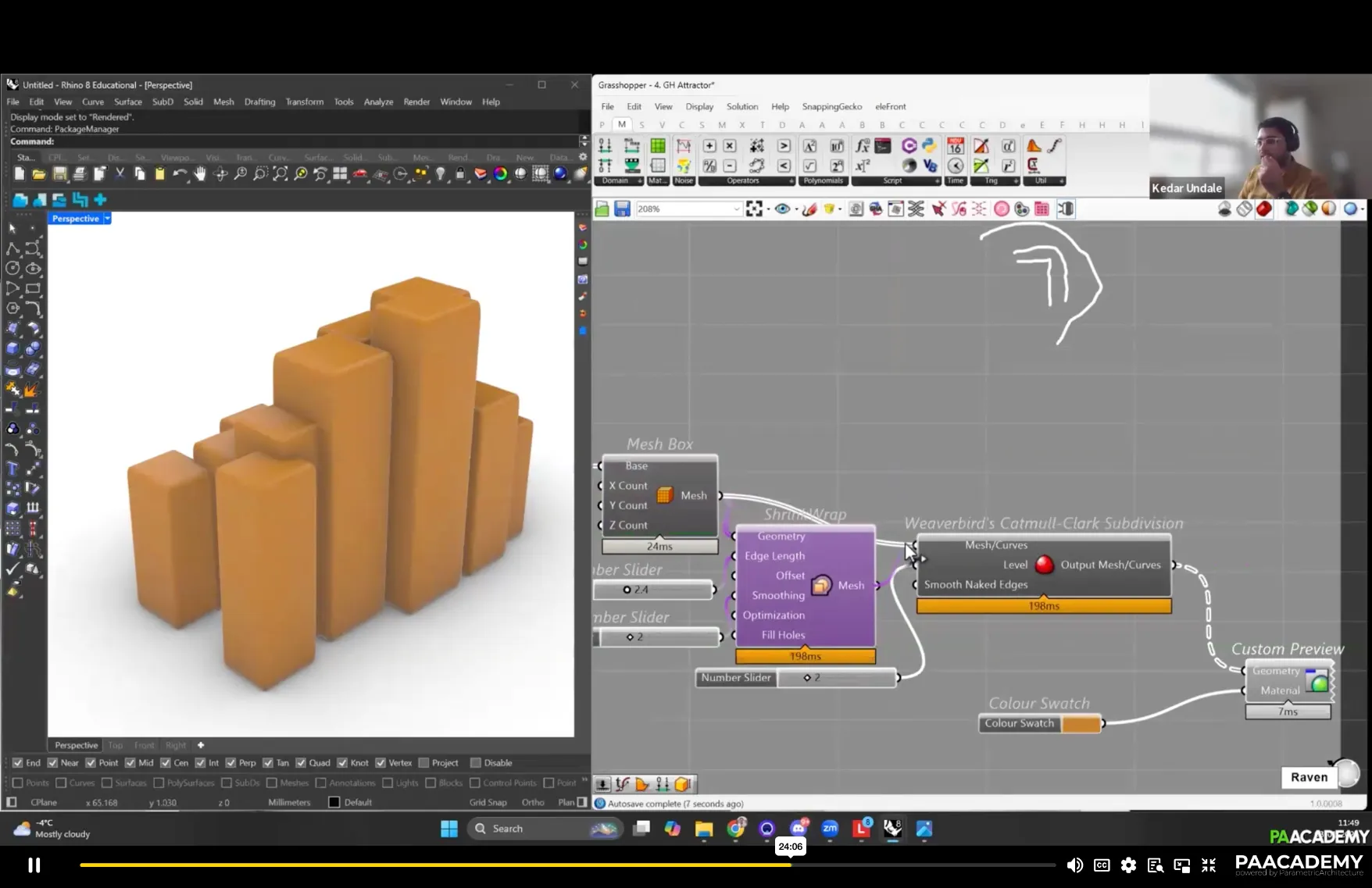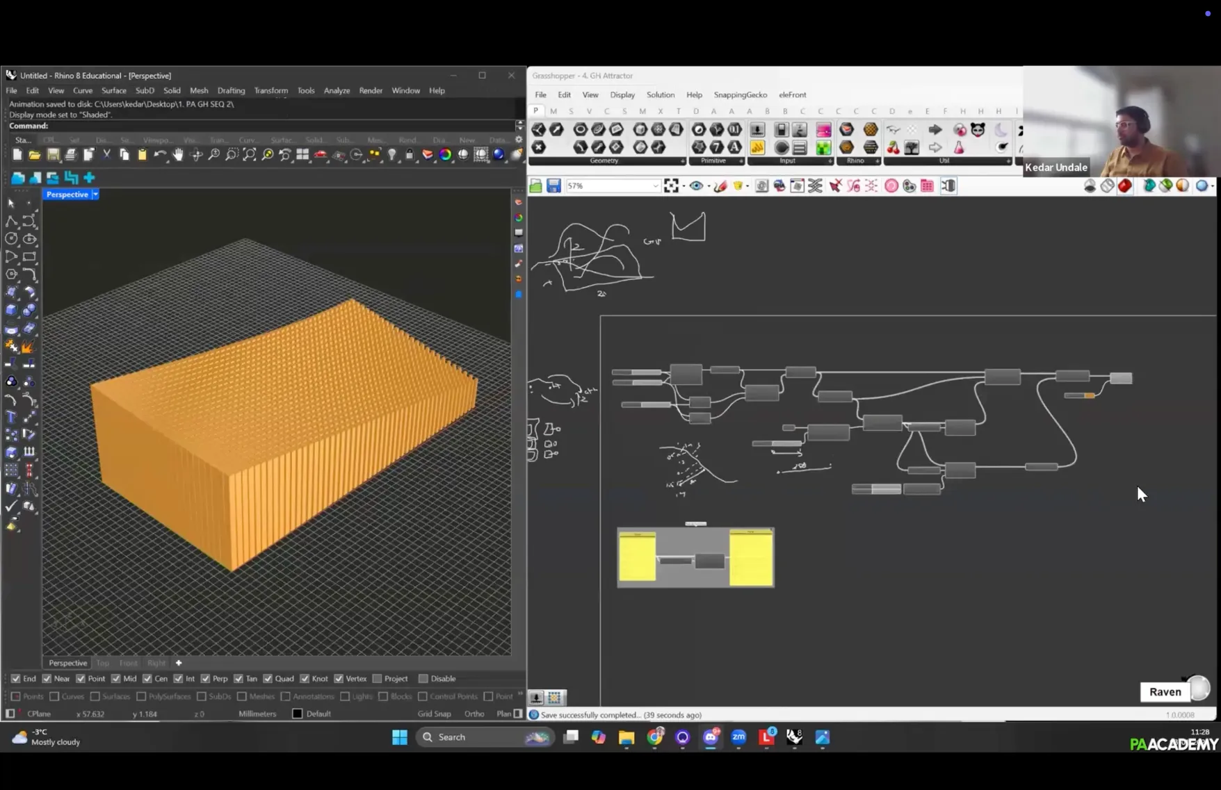 Participants will learn key Grasshopper3D concepts like data trees, color coding, and wire connections, and explore how to animate frames using sliders and different plugins. In this stage, we will be working with abstract patterns, but participants can choose their own designs as well. The focus is on building an understanding of animation within the Grasshopper interface.