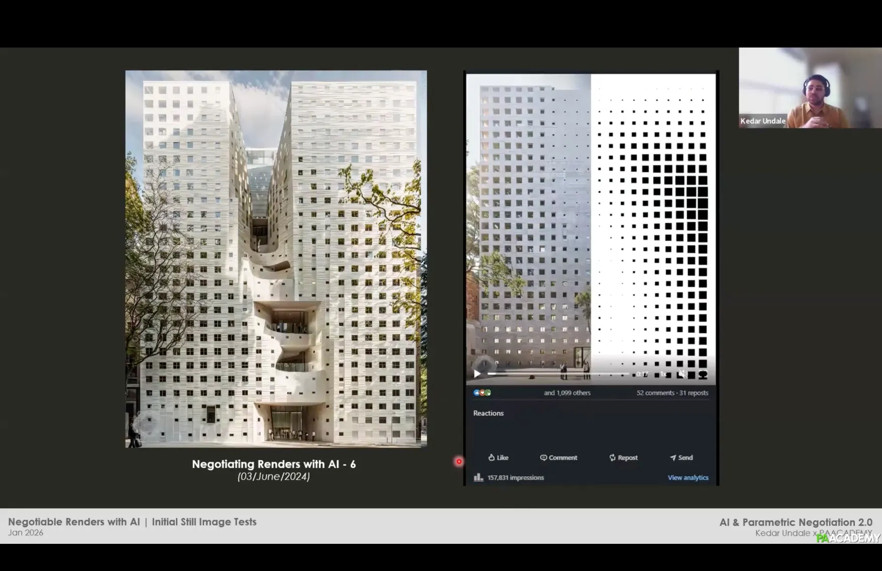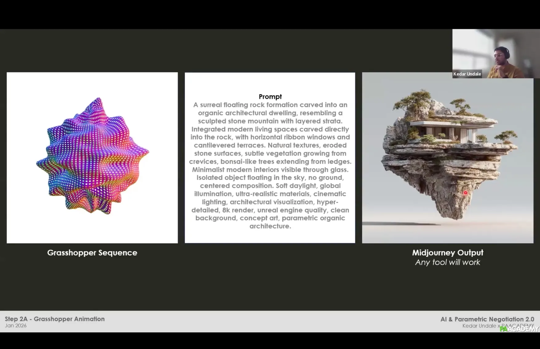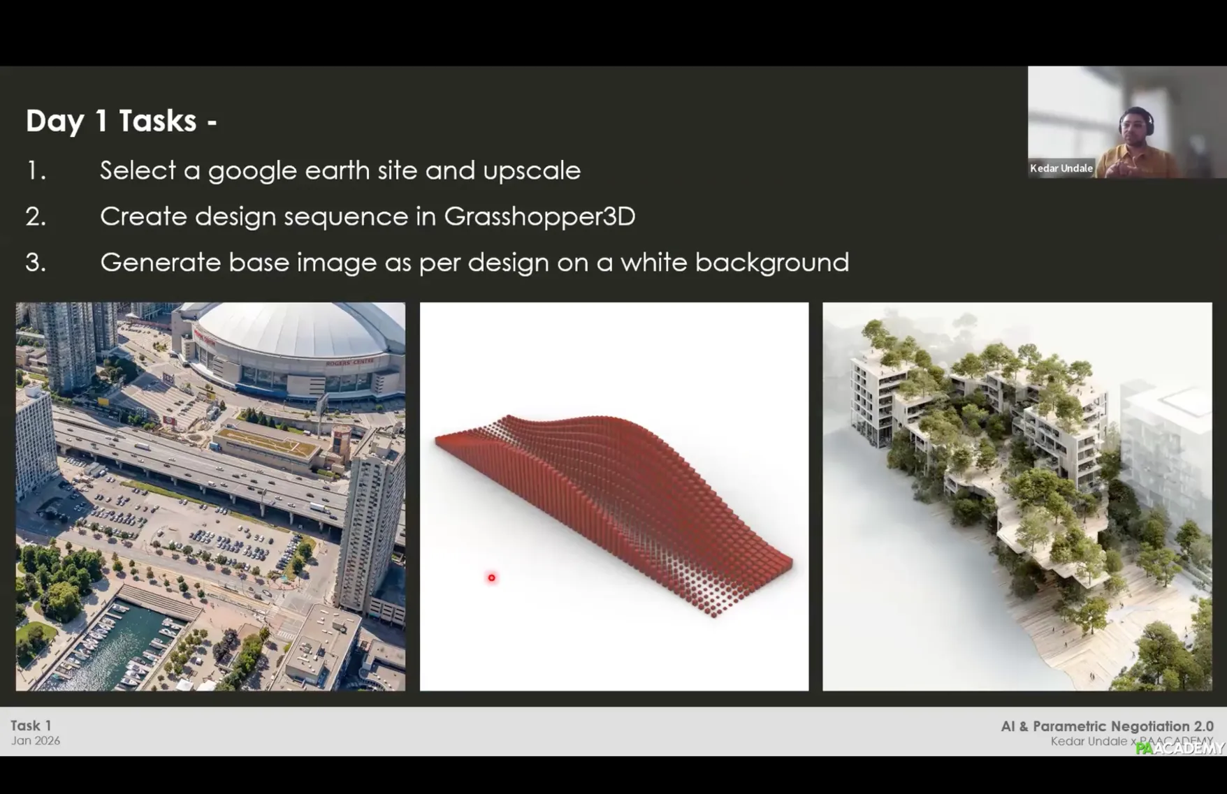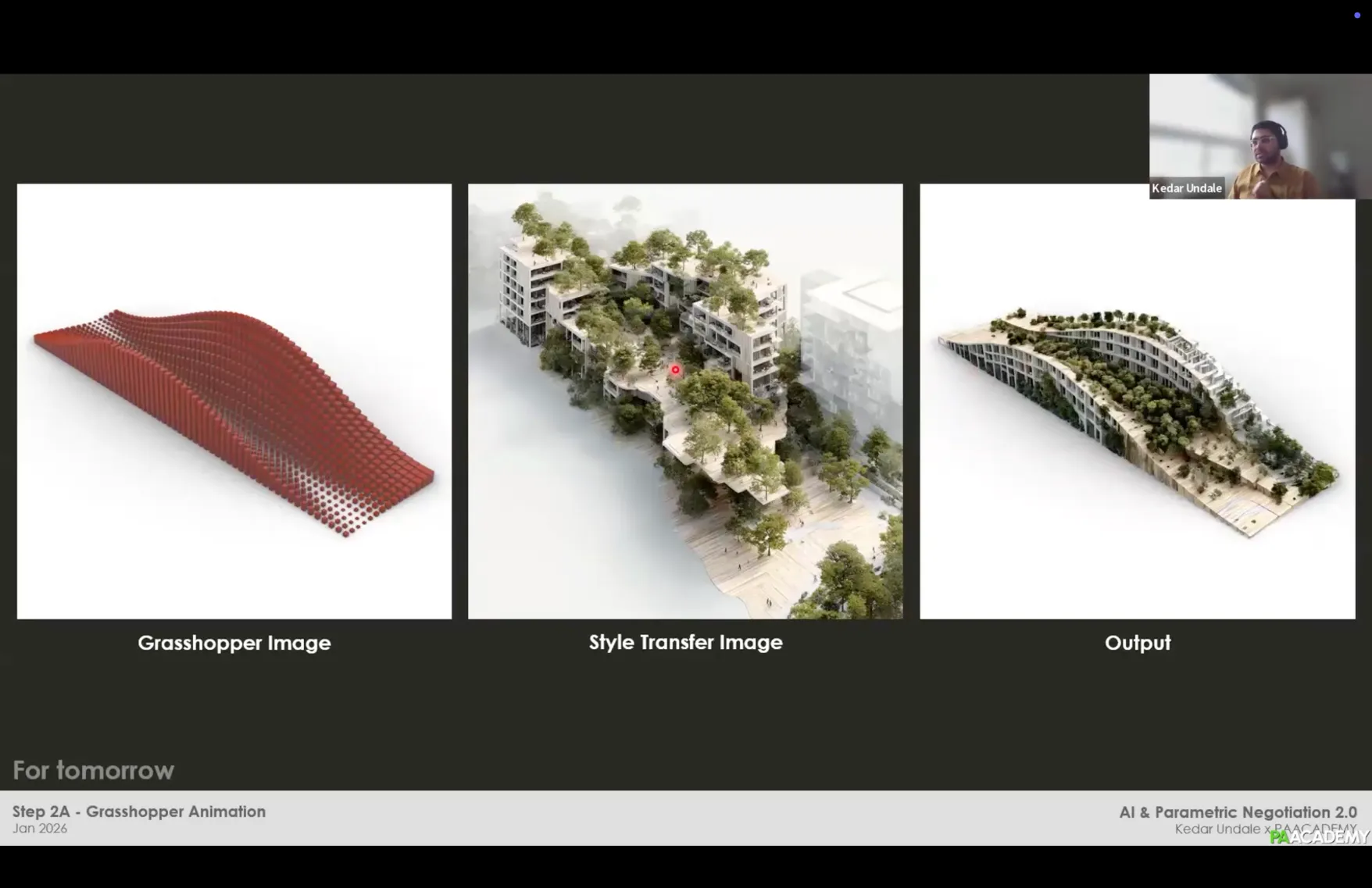 This workshop explores how designers can merge parametric design with generative AI to transform animations into site-integrated architectural visuals.