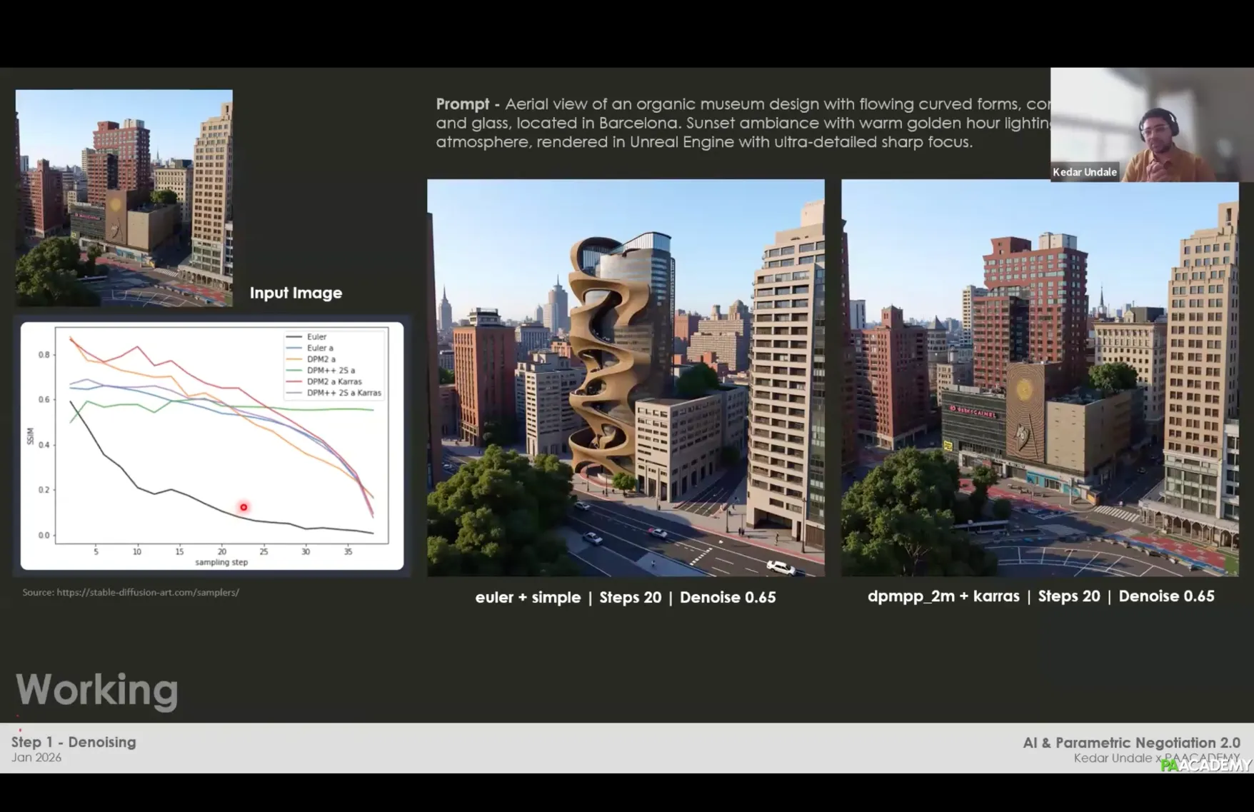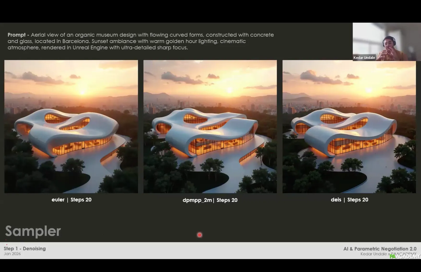 This stage introduces core AI concepts such as checkpoint models, VAEs, and prompts before translating Grasshopper frames into architectural renders using ComfyUI. Participants will use ControlNet models (Depth and Sketch) and IPAdapter to guide and style their outputs.