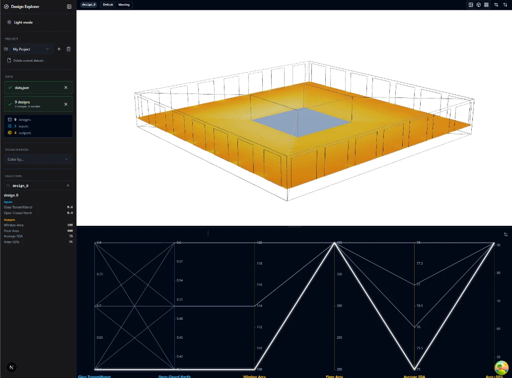 To navigate the massive amount of data generated by these simulations, we will set up an advanced data management framework. This will allow us to generate a brute-force dataset of design iterations, which participants will analyze using a custom, in-house Design Explorer. Finally, we will use Galapagos for single-objective optimization and Opossum for multi-objective criteria, iteratively refining the building before blending the technical outputs with AI-generated visual aesthetics.