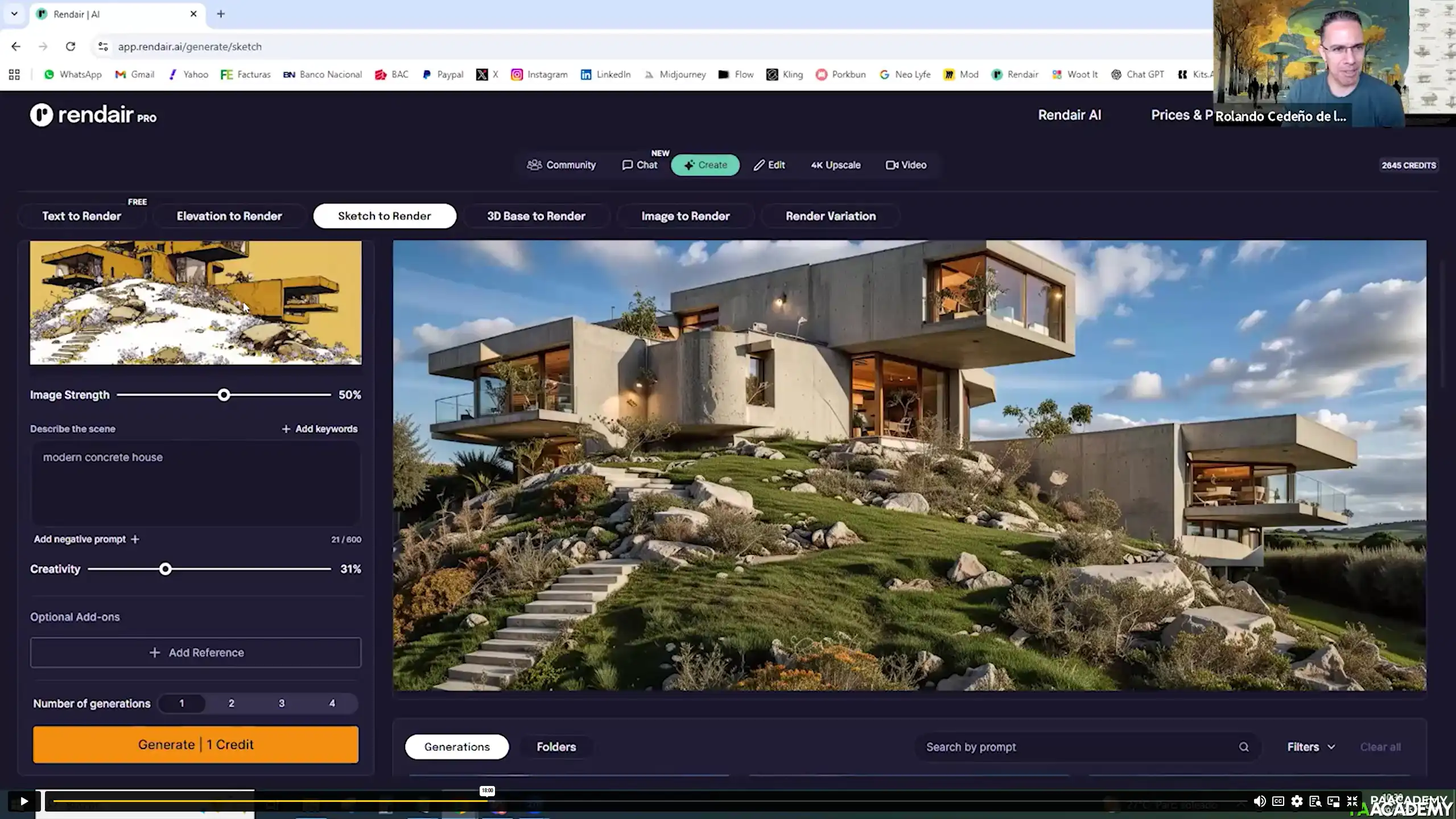 All participants will receive a one-month free subscription to Rendair during the workshop. The only required subscription is a MidJourney Standard membership for the hands-on exercises. Other AI tools used in the workshop (Kling AI, Archivincy, ChatGPT, DeepSeek) will be demonstrated by the instructor, but having your own subscriptions for these is not mandatory to attend.