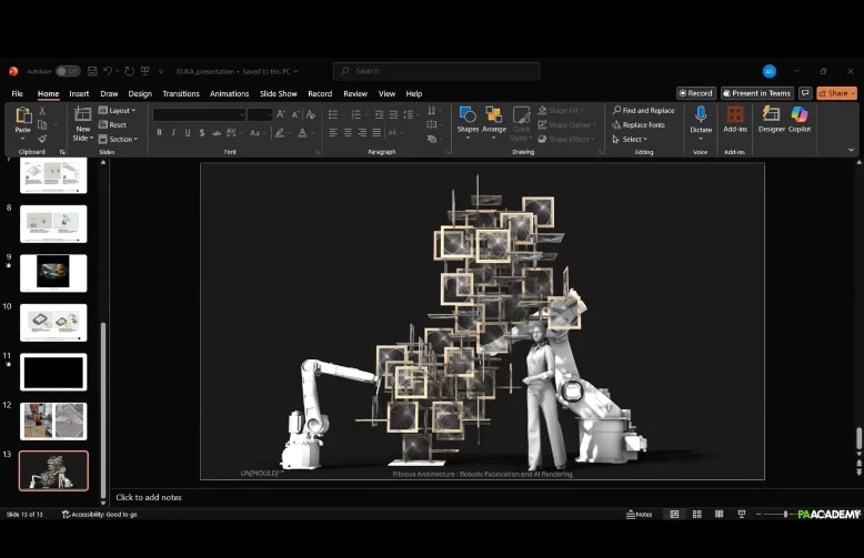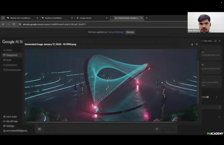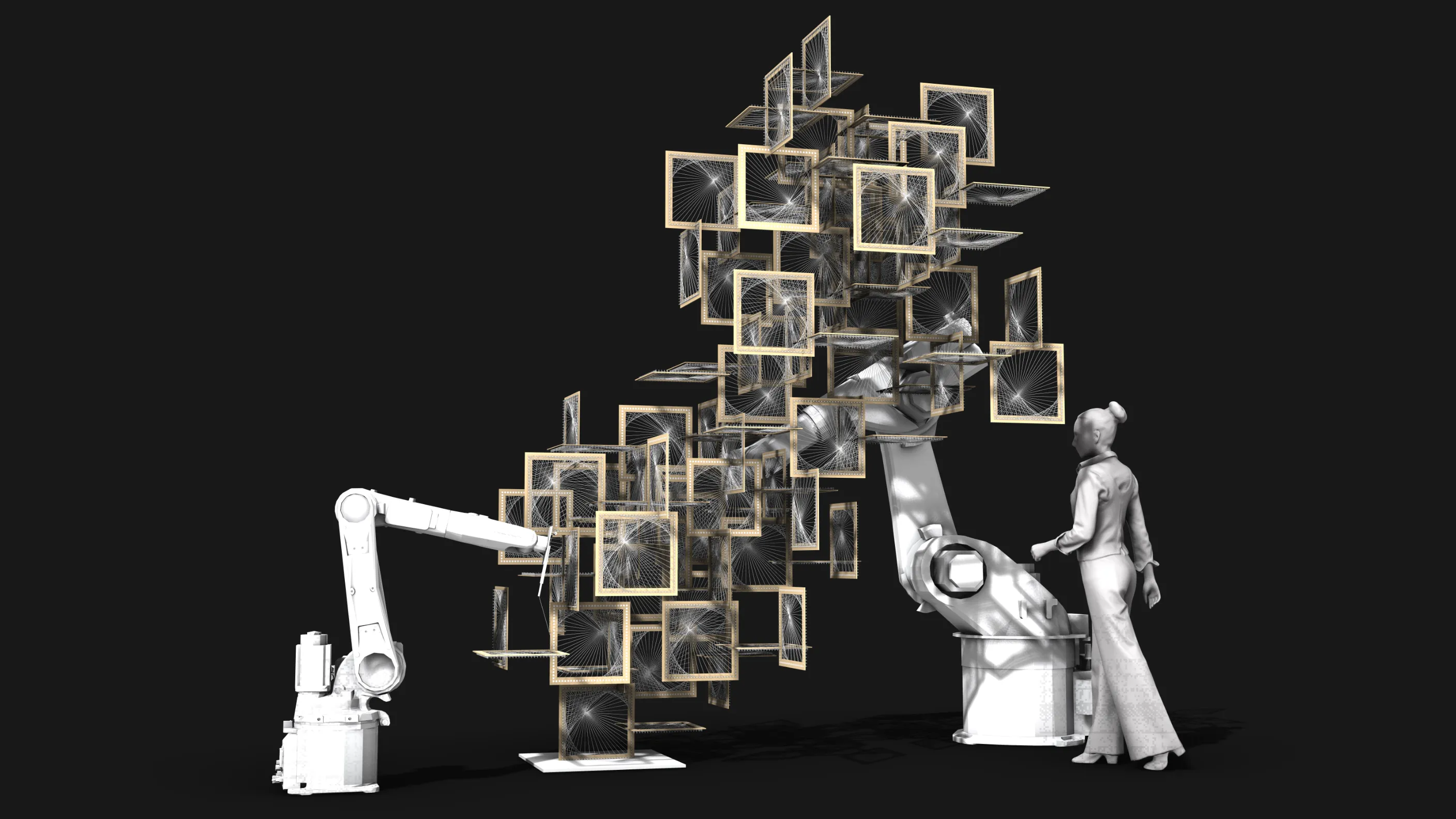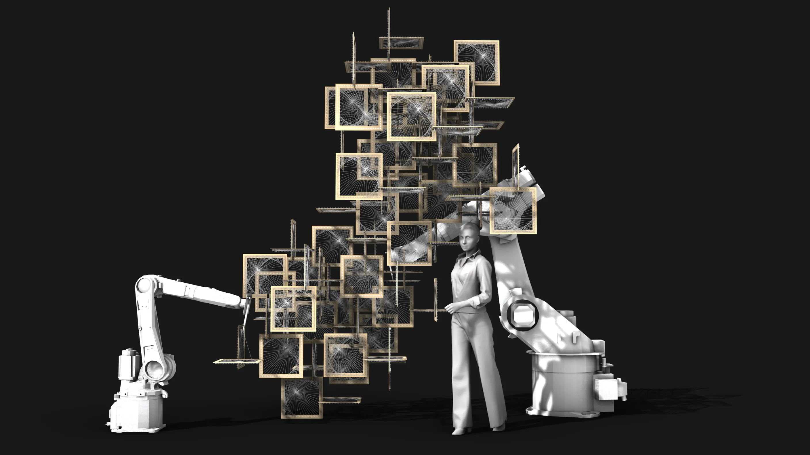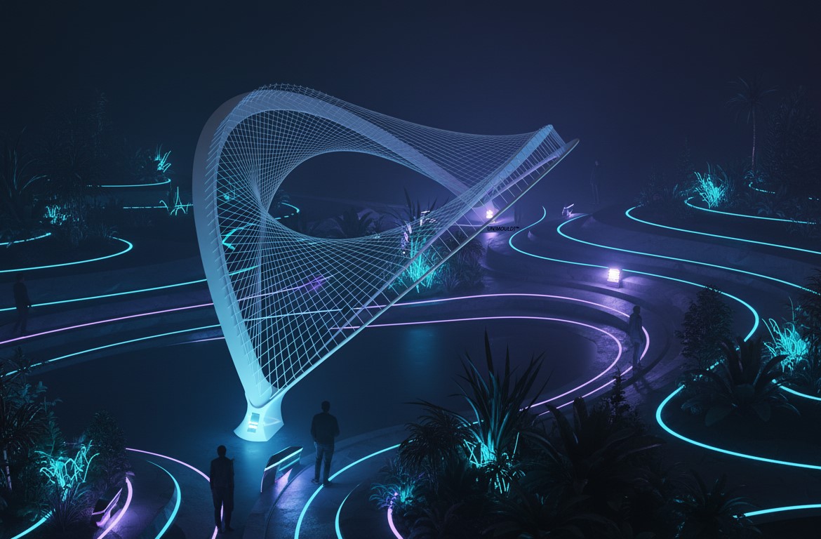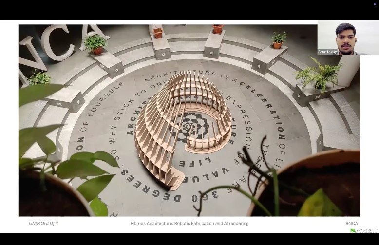 This workshop teaches participants to design fibrous structures, develop manual and robotic winding workflows, and generate final AI-assisted visualizations.