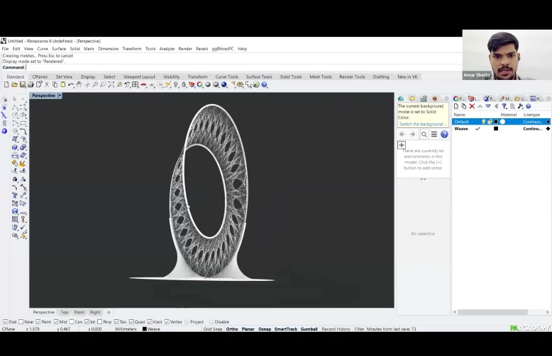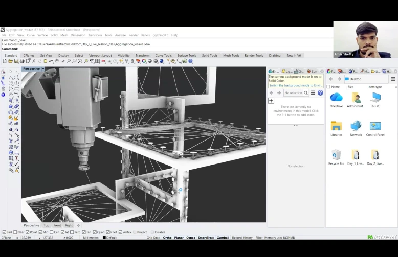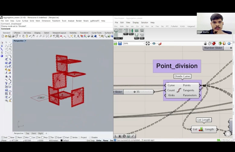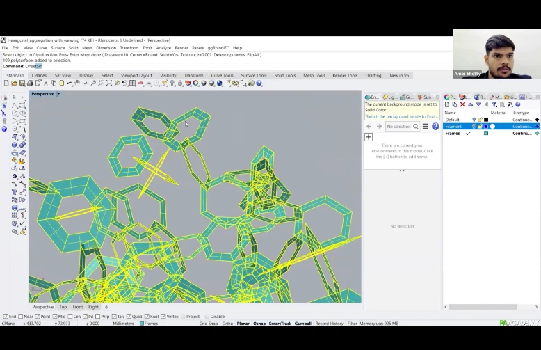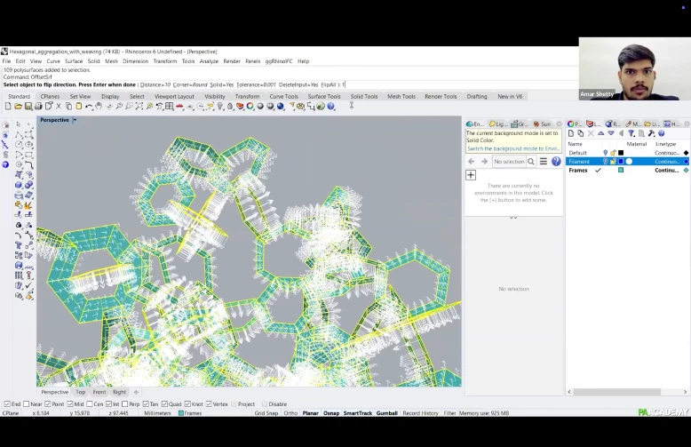 The workshop will focus on scripting a computational workflow within Grasshopper, from designing the frames to incorporating nuts and bolts with notches for fixing the frames together. ‘Weaver ant’ will be used to generate the filament pattern and to generate data for winding.