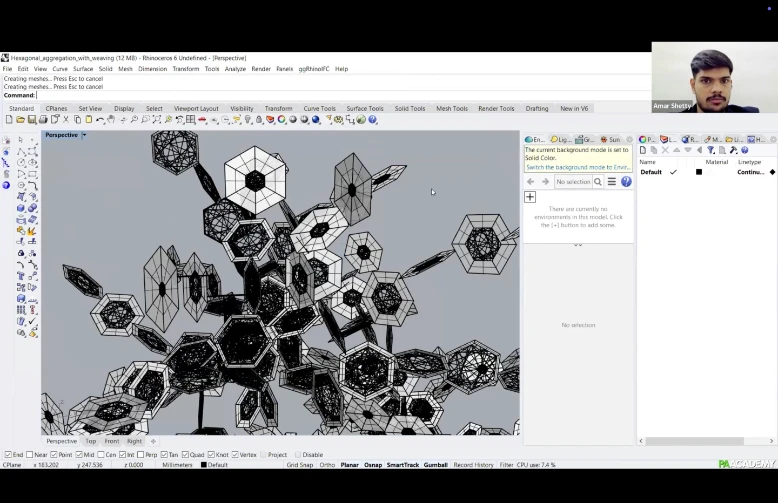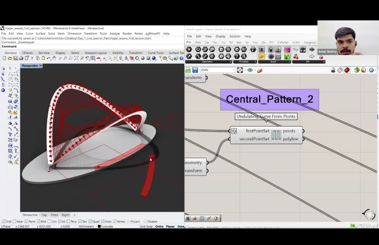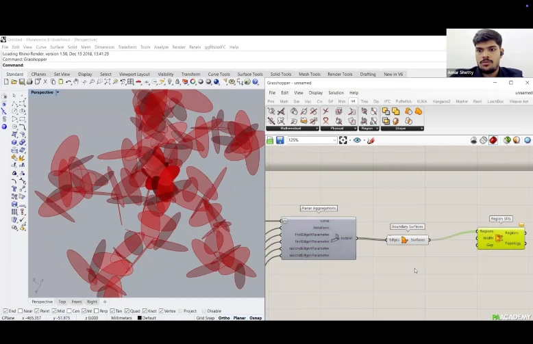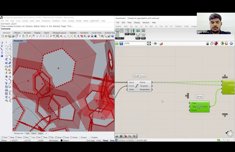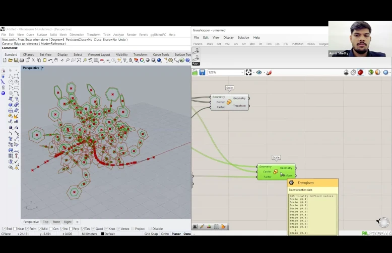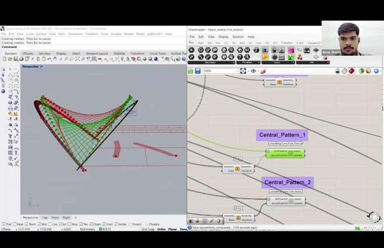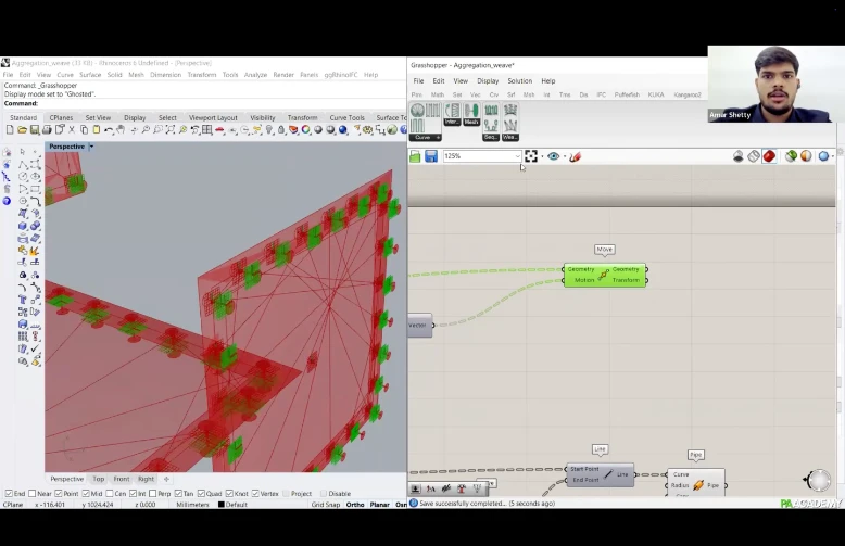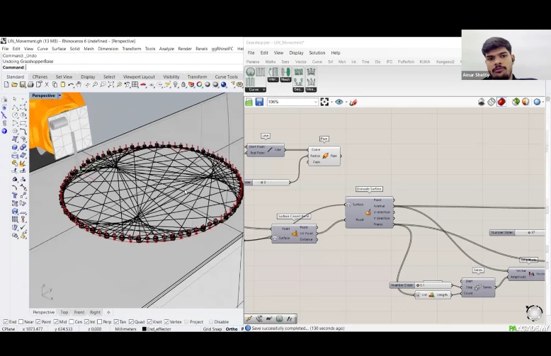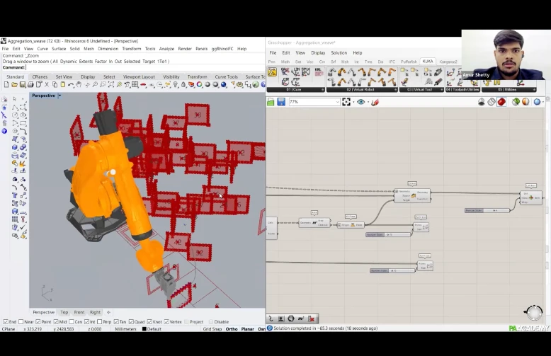 Participants will learn how to create computational workflows within Grasshopper 3D using ‘MutAnt’ for aggregation of polygonal planar geometries and ‘Weaver Ant’ to design fibrous systems for robotic winding through ‘KUKA Prc’.