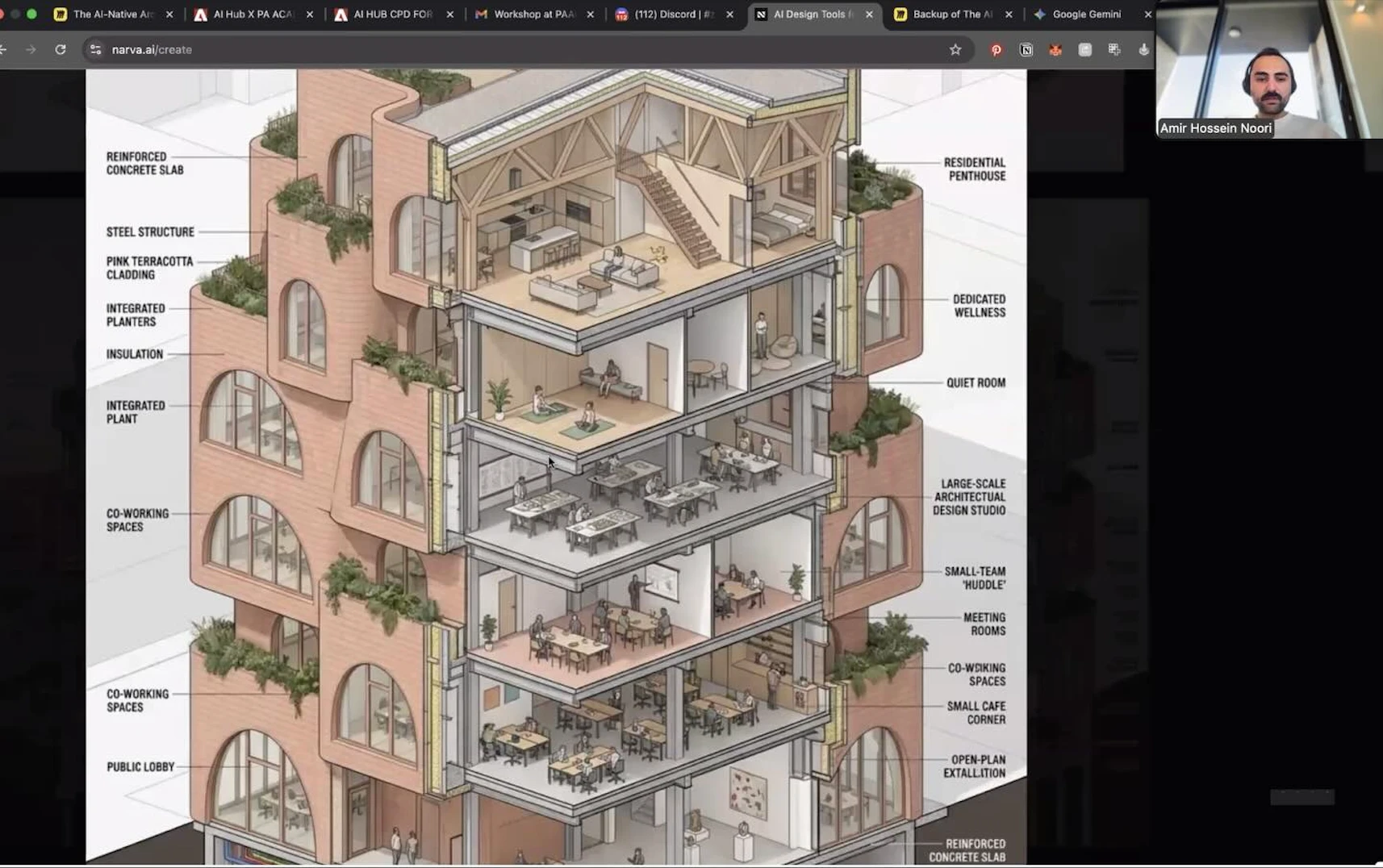 This masterclass covers the full spectrum of how AI can be integrated into an architectural project from the earliest stages of interpreting a brief through to producing client-ready visual and presentation material. The focus is on showing participants how AI can meaningfully contribute to creative thinking, spatial planning, visual communication, and design development across multiple stages of practice.